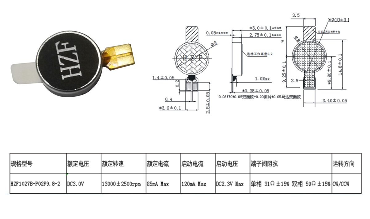 Your Location: Home -> Vibrating Motor -> HZF1027B-P02F9.8-2